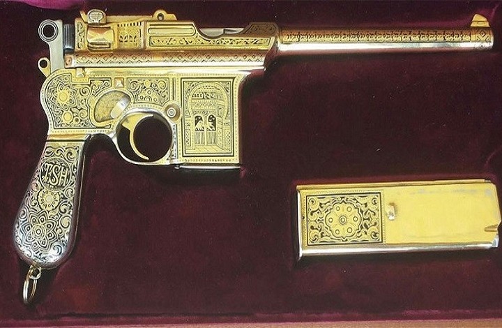 ويتميز مسدس الماوزر الذهبي، الذي تمت مصادرته في شمال القوقاز، بالزخرفة اليدوية الفنية للمعلم خوان رودريجيز، الذي يقال إنه قام بزخرفة مسدسات للزعيم السوفيتي يوسف ستالين.