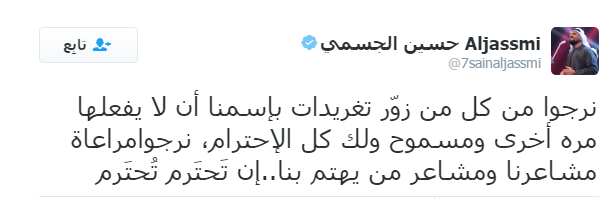 وقال في تغريدة عبر حسابه على "تويتر": "نرجو من كل من زوّر تغريدات باسمنا أن لا يفعلها مرة أخرى ومسموح ولك كل الاحترام".
