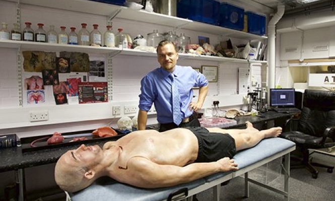 وتم تصنيع النموذج باستخدام مواد هلامية من السيليكون والألياف، واستخدمت جثة مجهولة الهوية للحصول على أبعاد الجسم، وقامت شركة "تروما إف إكس" بتصنيع الجلد الخارجي الذي يمكن شقه بالمشرط.