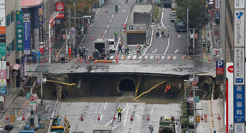 دون وقوع اي اصابات بشرية, انشق صباح اليوم شارع رئيسي كبير في بمدينة " فوكوكا " اليابانية نتج عنه حفرة كبية جداً.