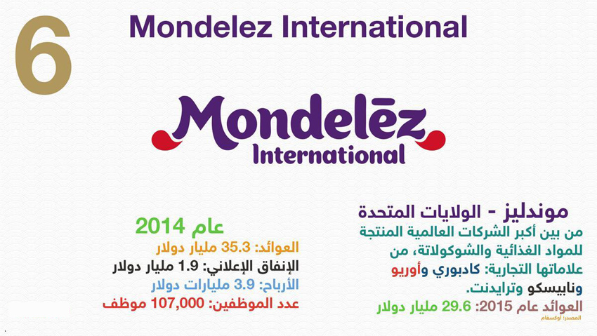 وبلغت عوائد شركة موندليز الأميركية، المنتجة لشكولاتة كابوري وأوريو، عام 2015 أكثر من 29.6 مليار دولار.