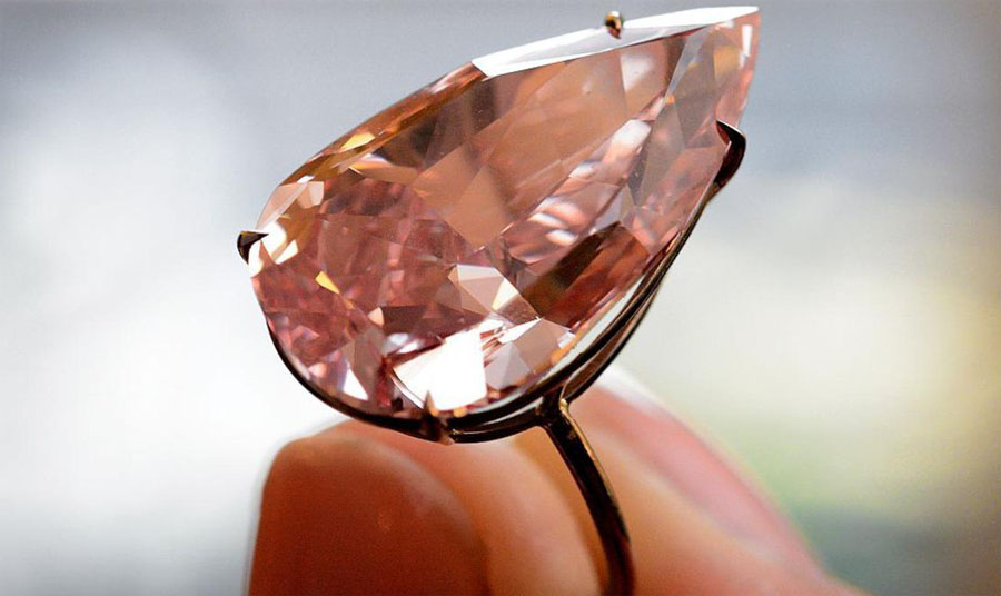 بيعت يوم الثلاثاء،في صالة " كريستي " للمزادات الماسة الوردية اللون،والتي تشبه ثمرة الكمثرى بمبلغ 18.11 مليون دولار أمريكي، لاحد الهواة الآسيويين المهتمين بجمع التحف.