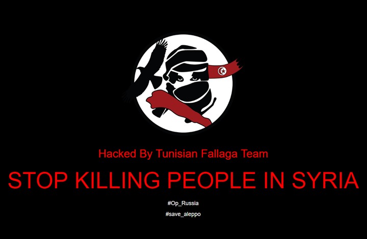 تمكن أحد أفراد مجموعة هكر " الفلاقة" التونسية ،من اختراق عشرات المواقع الروسية ،احتجاجاً على المجازر التي يقوم بها الروس في حلب.