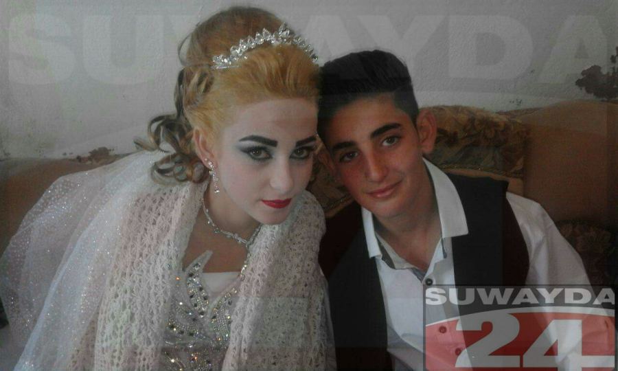 ونشرت وسائل اعلام محلية في مدينة السويداء، صورا من حفل زفاف العريس الطفل مؤيد الأعور من قرية الهيات ذي الـ(14) عاما، وعروسته ذات الـ(15)، وقالت إنهما "أصغر عروسين في السويداء".